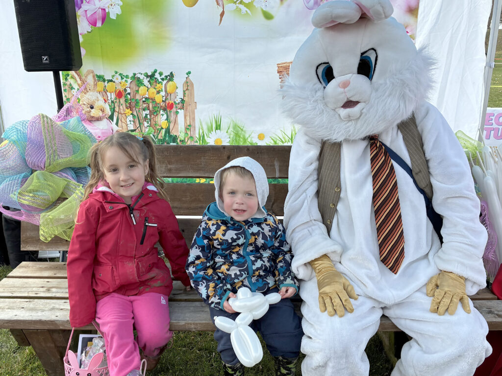 Beau Bunny was a big attraction at this year’s Town of Kingsville Easter Egg Hunt. Taking a photo with Beau are Isla Locknick and her younger brother Liam.